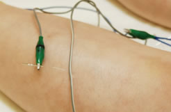 通常、まずは鍼灸での施術を行います。さらに鍼に電流を流し、効果を高めます。